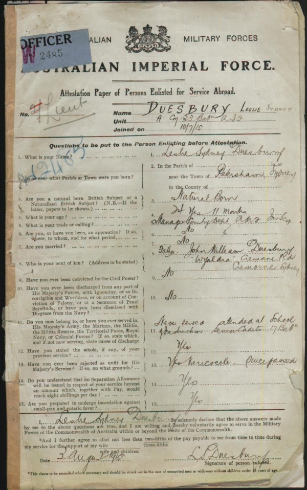 For my own personal project, I am balancing a couple of areas of interest. My research into Leslie Duesbury has given me more information about the movement of the 33rd battalion throughout the Western Front during the war. My most interesting find was a copy of Leslie’s attestation form for the Australian Imperial Force, which contained a few pieces of personal information. Finding this form was particularly special - although it may not be the most useful piece of evidence in terms of providing information on him or his part in WW1, it is one of the few traces I have actually found of him that had a personal touch. Seeing his handwriting and signature, actual evidence of his character, personified him in a way that no amount of research on family trees or military reports could do. I am also looking into the status of munitions in the North of France, as there are still lots of shells buried throughout the French countryside, that residents are still unearthing on their land today. For this research area, I am fortunate enough to be able to work with Camille, as her relatives are among those who have unearthed shells in recent years.