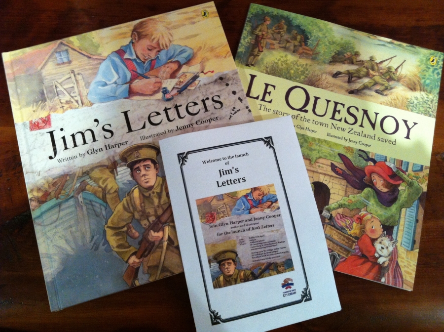 On Friday the 11th April, my Mum and I went to the launch of the children's book 'Jim's Letters'. The story is written by Glyn Harper a Professor of War Studies at Massey University, with illustrations by Christchurch based artist Jenny Cooper. The pair also worked on the bestselling children's book 'Le Quesnoy', the story of the New Zealand liberation of the French town held by German forces in WWI. 'Jim's Letters' is a story told through letters between a young man named Jim who was sent to war to fight in the Gallipoli campaign, and his younger brother Tom who writes to him from the family farm in Ranfurly, Central Otago. The letters in the book were based on real letters exchanged between soldiers and their families during the war. The launch included a compelling reading of the book by three students from Ashurst School, and a very moving rendition of the last post by Lt. Tim Cook. Harper and Cooper also spoke, describing what inspired their contribution to 'Jim's Letters'. For example Cooper photographed a family in Wellington, who dressed up in WWI attire and posed for photos which she then used to base her paintings on for the book. She did this in order to create an accurate depiction of WWI soldier. An example being their WWI uniform. Being inaccurate, was a mistake she said she made when illustrating 'Le Quesnoy'.