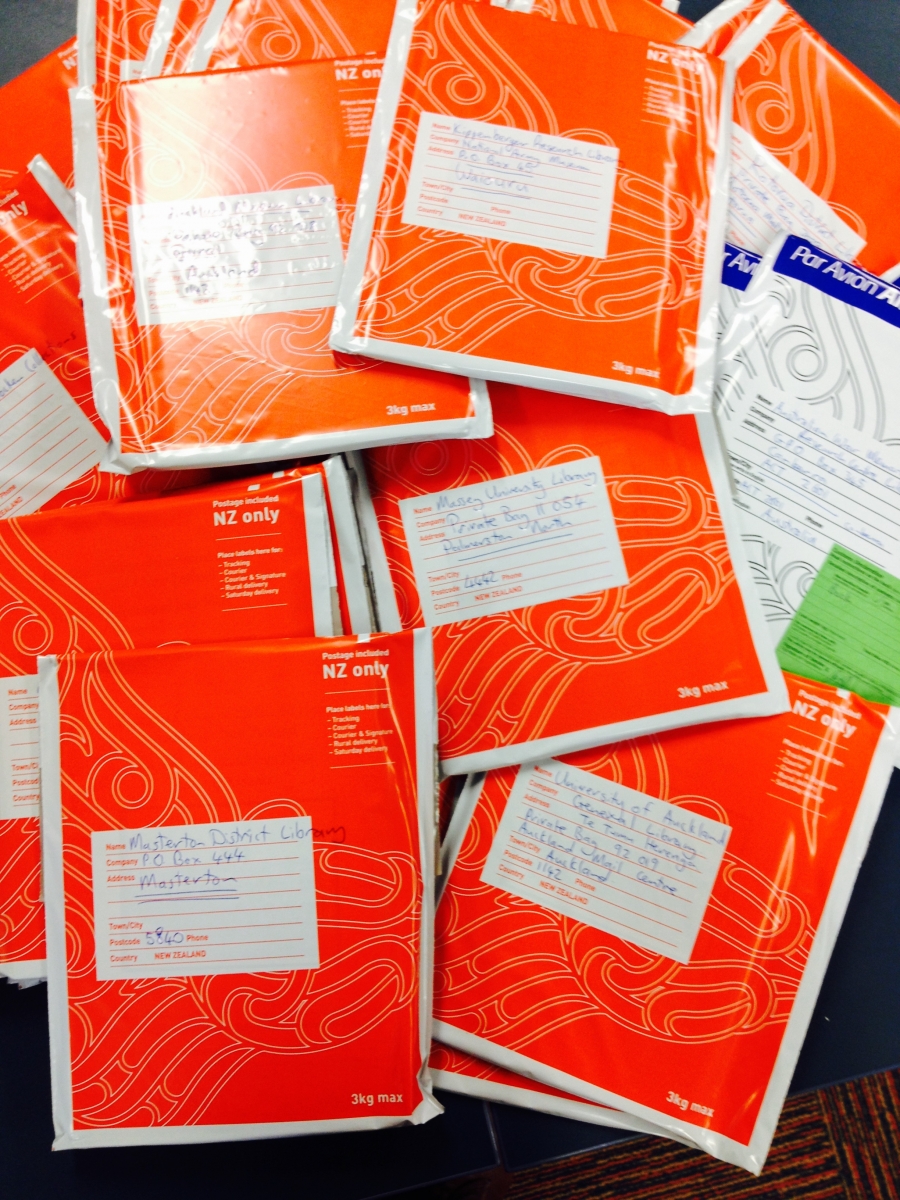 We have posted our book "to many libraries in New Zealand and Australia. The photos shoe the books in envelopes ready to be sent. The libraries included public libraries and university libraries.
